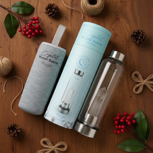 Enhance your hydration routine with our Crystal Infusion Glass Water Bottle. Embedded with the natural energy of Clear Quartz crystal, this bottle allows you to craft a crystal tonic or elixir.