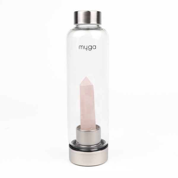Sip infused serenity with the Crystal Infusion Glass Water Bottle. Crafted with natural Rose Quartz crystal, this bottle will directly purify and enrich your water with the calming and transformative energy of love. Its neoprene protection sleeve keeps it safe from everyday wear and tear as you enjoy the harmonising, gem-water restorative powers of Rose Quartz.
